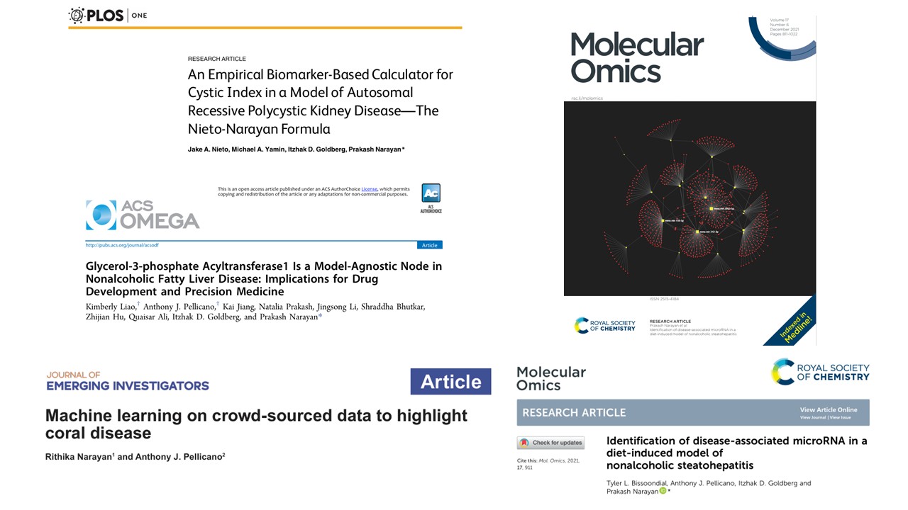 Rithika Narayan, Carnegie Mellon ISEF Finalist (2020), Regeneron STS Scholar (2021), JSHS Semifinalist Long Island (2021), Presidential Scholars Program semi-finalist, Valedictorian Elwood-JGHS Publications - Appl. Sci. 2019, Clin. Exp. Hepatol. 2020, JEI, 2021